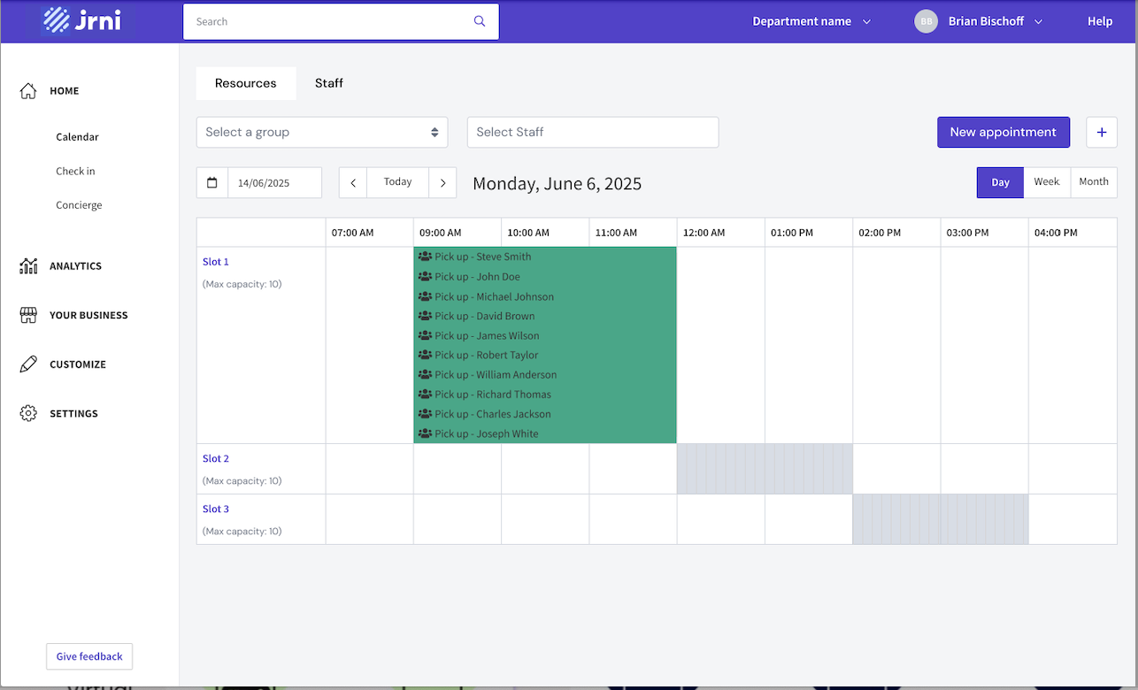 - Resources that reach full capacity are now clearly blocked from taking additional bookings, helping avoid overbooking and keeping schedules accurate